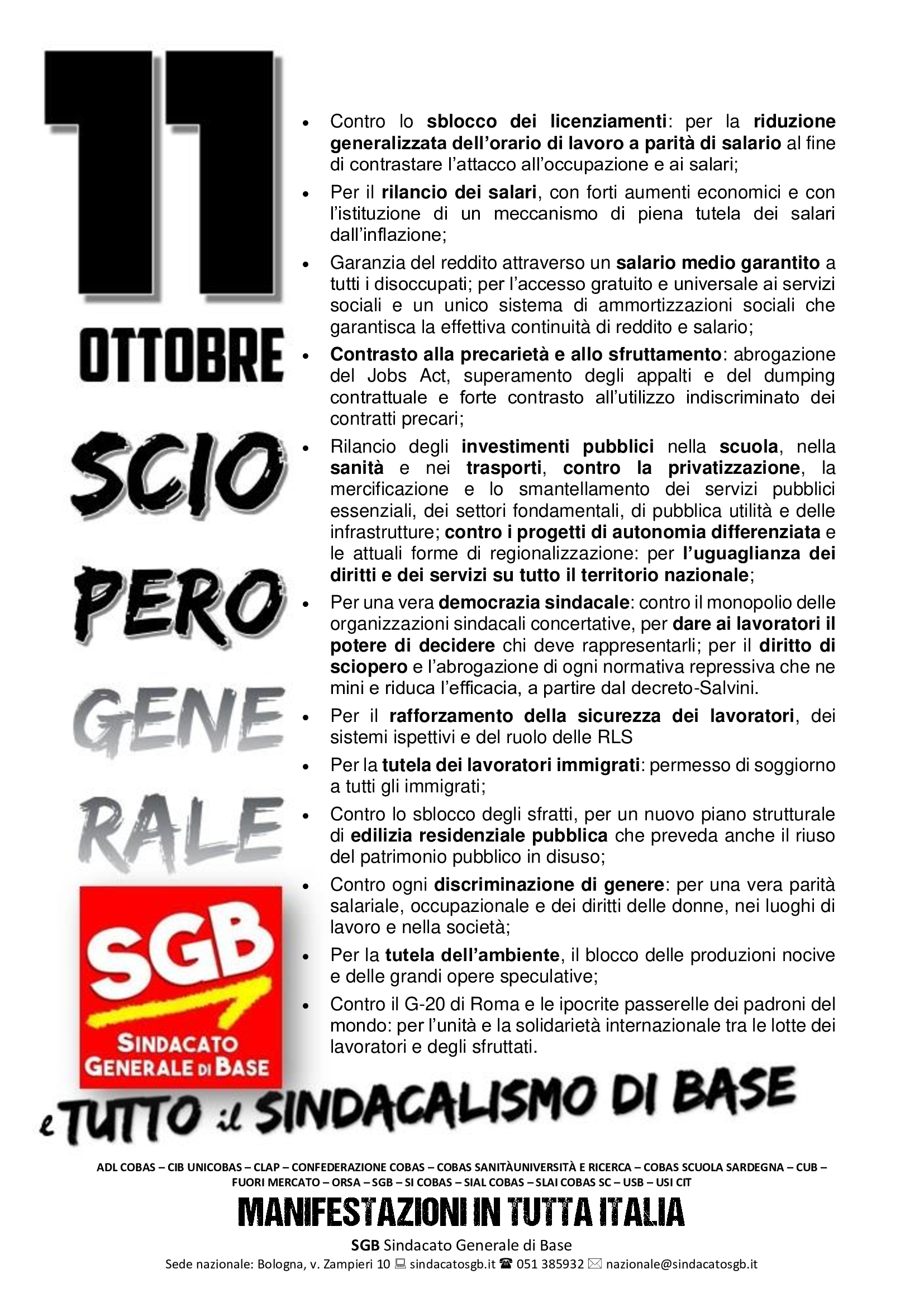Sindacato SGB - Sciopero generale 11 ottobre 2021