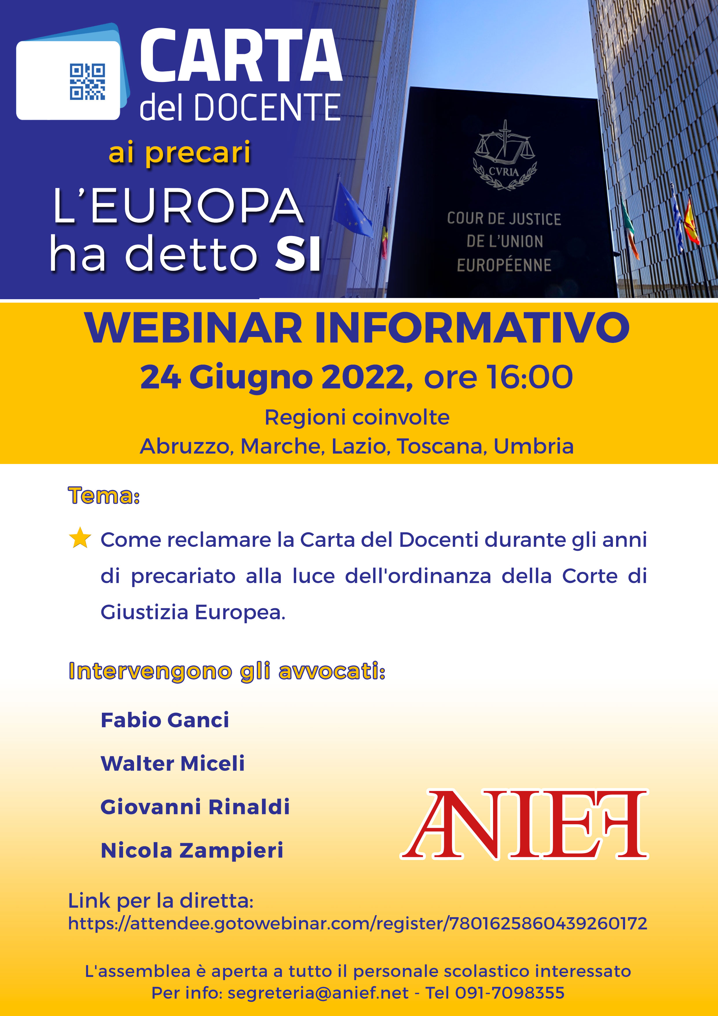 Assemblea incontro-informativo ANIEF Area Centro 24 giugno 2022 Locandina
